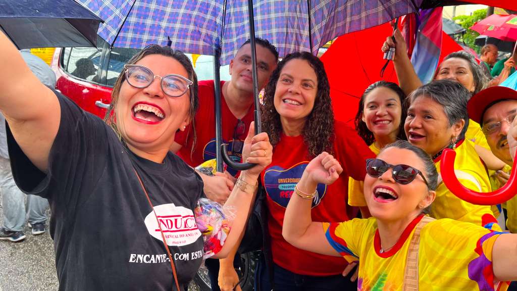 Nesta quarta-feira (4), mesmo sob fortes chuvas, centenas de pessoas participaram do Ato Unificado “Para Geral”, mobilizado por entidades sindicais da educação e do serviço público, entre elas APEOC, FETAMCE, Sindiute e Fuaspec. A mobilização resultou no agendamento de uma negociação com o governador para a apresentação de um índice de reajuste salarial.